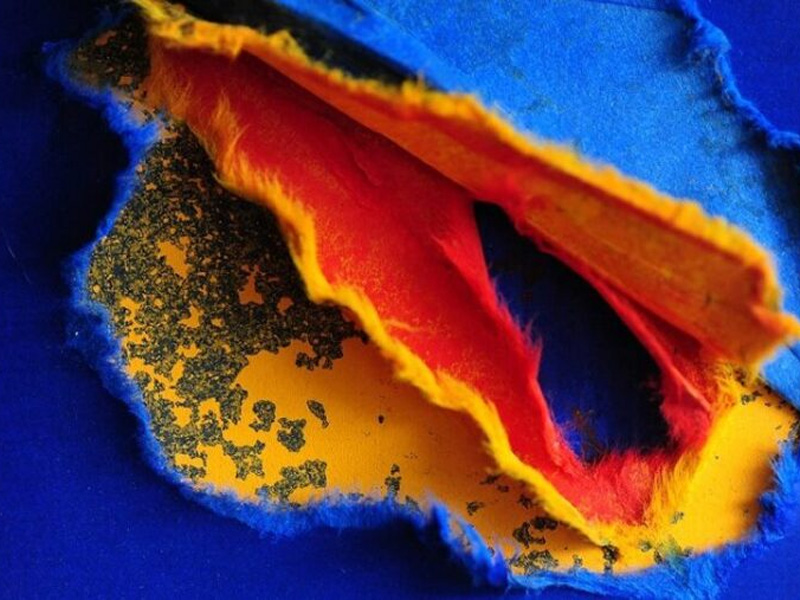 越前和紙に油絵具を幾層にも塗り重ね、